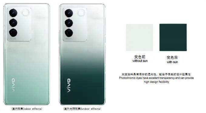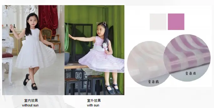 Vật liệu quang điện là vật liệu bột quang điện được sản xuất bằng cách bọc thuốc nhuộm quang điện trong các viên nang siêu nhỏ thông qua các quy trình đặc biệt, có thể hấp thụ năng lượng của ánh sáng mặt trời (tia cực tím) sau khi được chiếu xạ bởi ánh sáng mặt trời (tia cực tím), dẫn đến thay đổi cấu trúc phân tử, dẫn đến thay đổi bước sóng hấp thụ, dẫn đến thay đổi màu sắc; Khi năng lượng ánh sáng mặt trời (tia cực tím) bị mất đi, nó sẽ trở lại cấu trúc phân tử ban đầu và khôi phục lại màu sắc ban đầu. Đặc điểm: